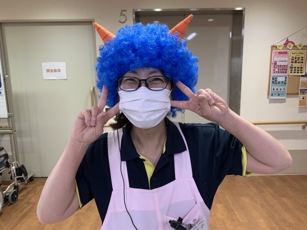 ネルソン介護職員は、初めての豆まきです!
