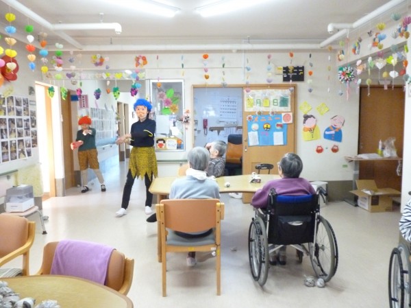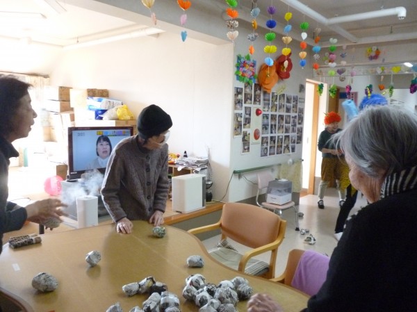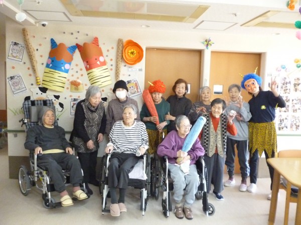 南中野でも豆まきを行いました~( *´艸`)入居者様も職員もノリノリで豆を鬼にぶつけハッスルしましたよ~( *´艸`)
