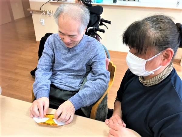 前回2日節分豆まきのご様子をお伝えしましたが、その日『おやつ』のご様子ををご紹介します。