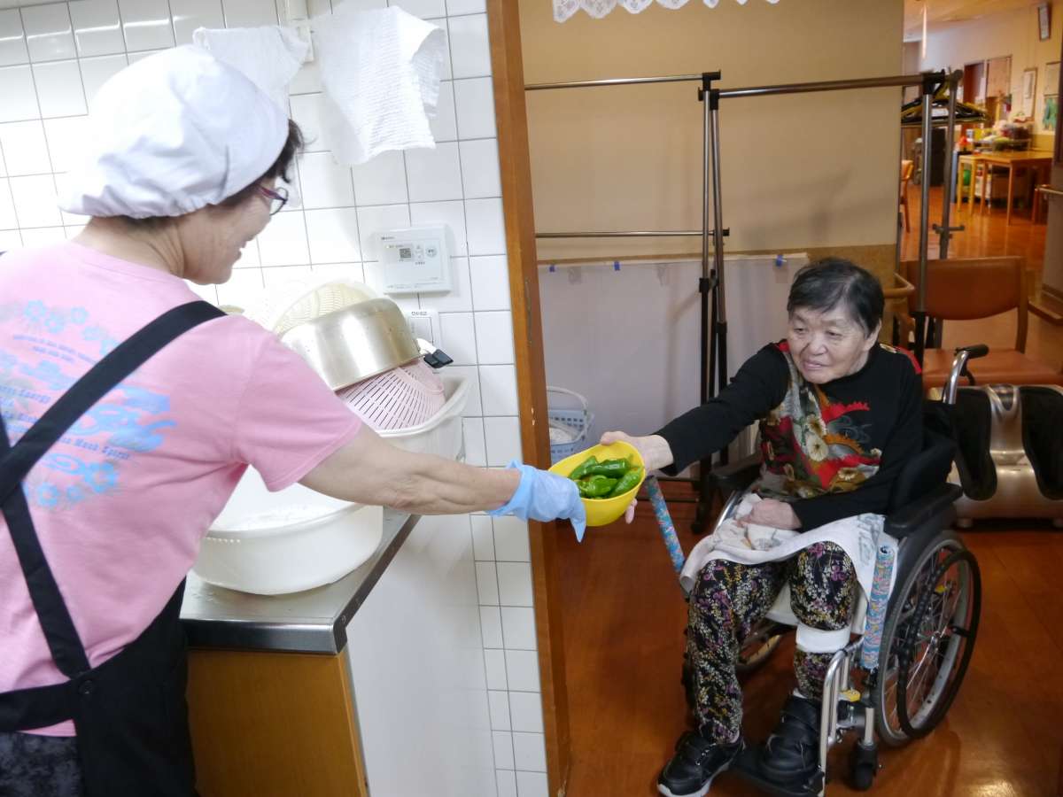 獲ったピーマンは、厨房スタッフさんに渡します。
