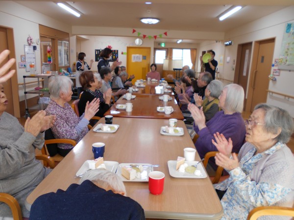 桃フロア、桜フロアのご利用者様皆様で、ハッピーバースデーの大合唱♪