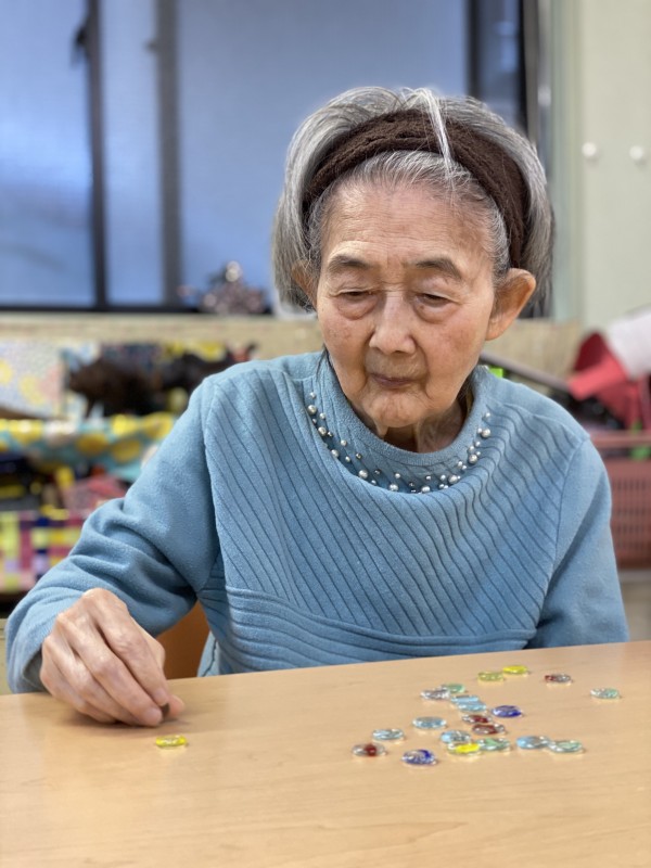 おはじきやお手玉は皆さんが、小さい頃よく遊んだおもちゃだと懐かしまれていらっしゃいました。