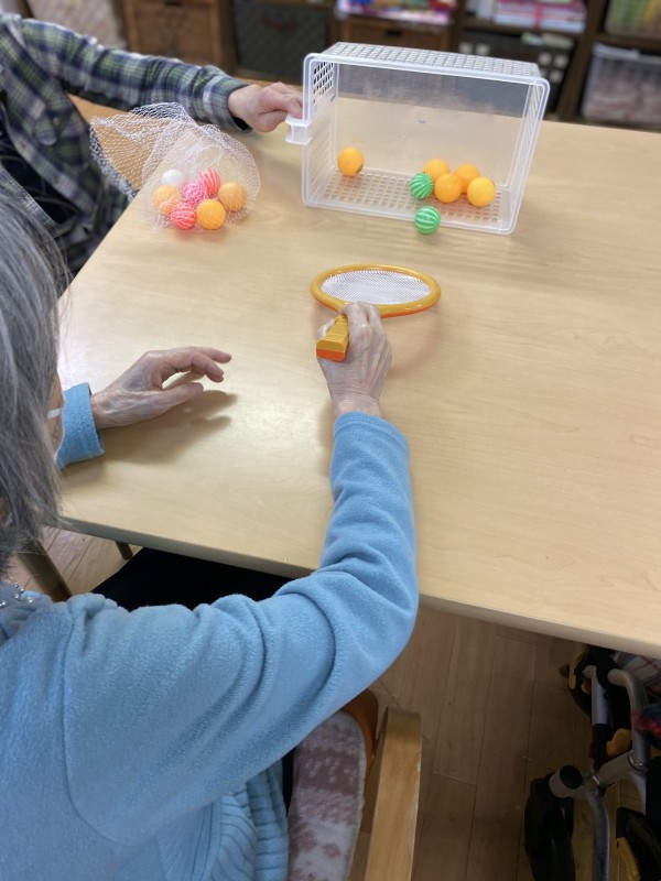 今度は、身体を動かす系のレクリエーション、風船バレーとテーブルサッカーですね。