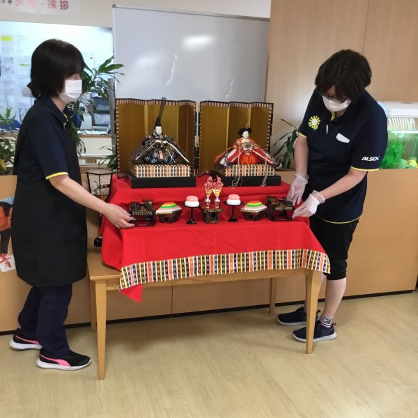 この雛人形がある事で、とても施設の雰囲気が明るく豪華になり、皆様が喜んでくださっています!!