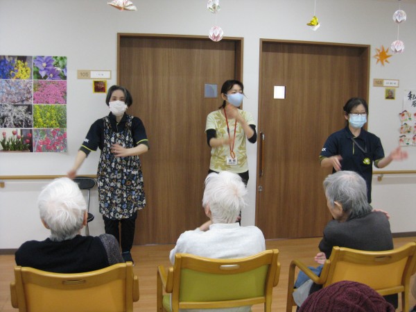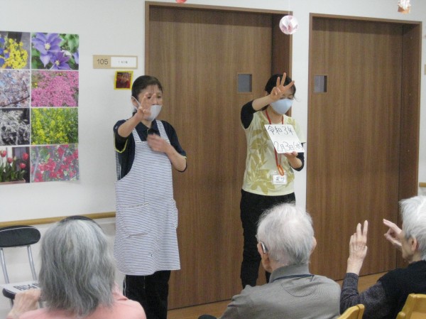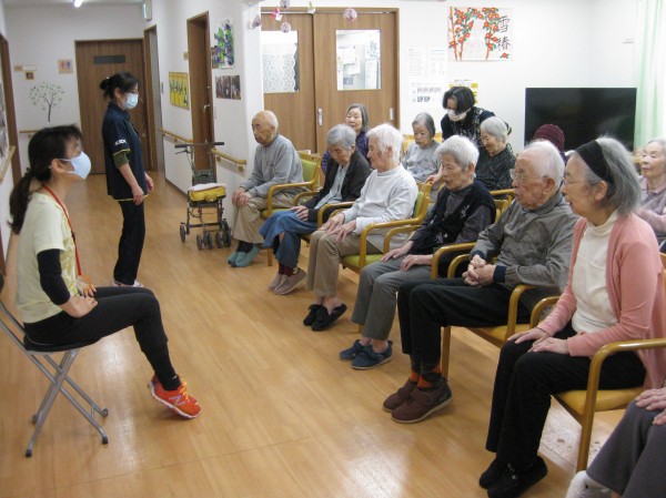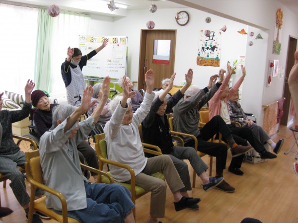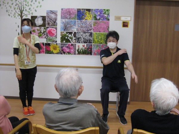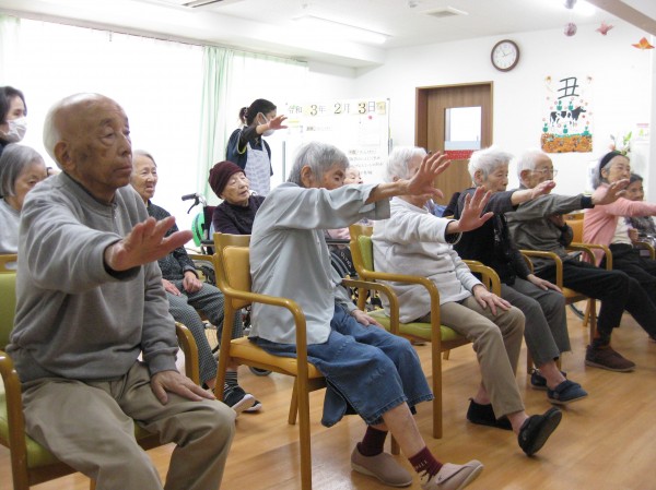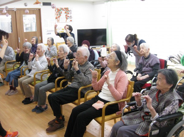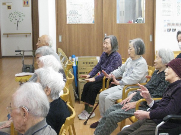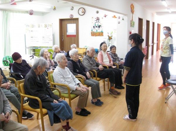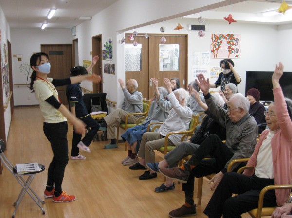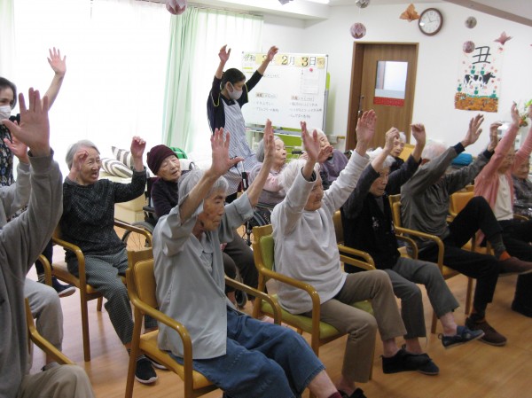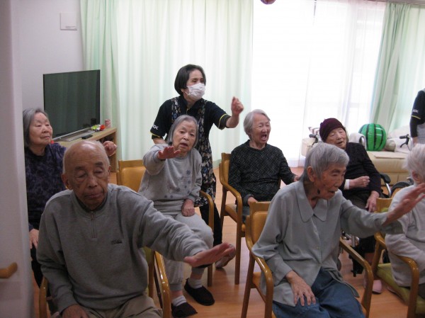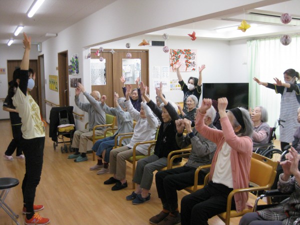 次はALSOKあんしんリズム体操です。音楽に合わせてリズムよく身体を動かしましょう・・・少し汗をかかれたようです。『楽しかった!自分で出来るね!』の声です。毎日継続です。健康が一番・・・皆様、しみじみと本当よね(笑)