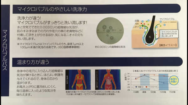 すごいところは、マイクロバブルが体全体の毛穴にまで浸透し、汚れを浮かせ落としてくれるので、身体を洗わなくていいんです。しかも、洗剤も使いません。今まで、洗いづらかった場所も洗体いらずとなりました。それにより浴槽内に浸かるだけで入浴と体を洗う作業がいっぺんにできてしまうのです。