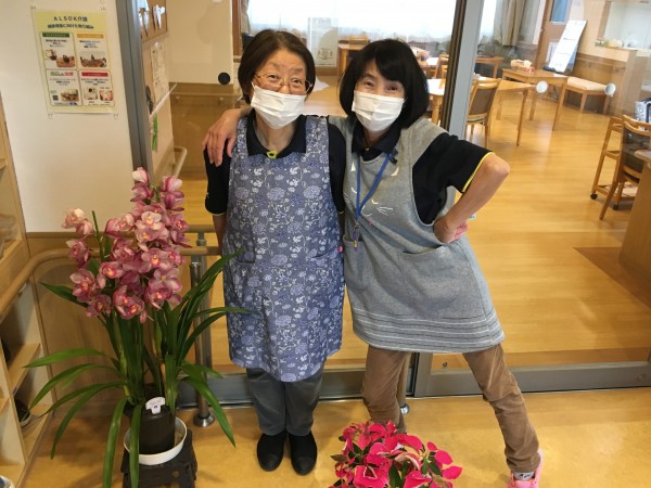 右の女性は遅番専門の職員さん。