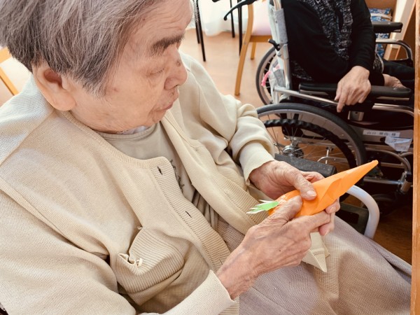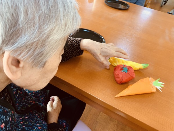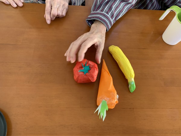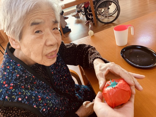 優しい入居者様はトマトを食べられないことを残念に思いながらも、精巧な作りを褒めてくださりました。
