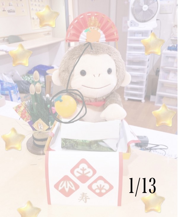 おぐ吉はお正月に鏡餅のかわりになったので頭にみかんをつけていました。