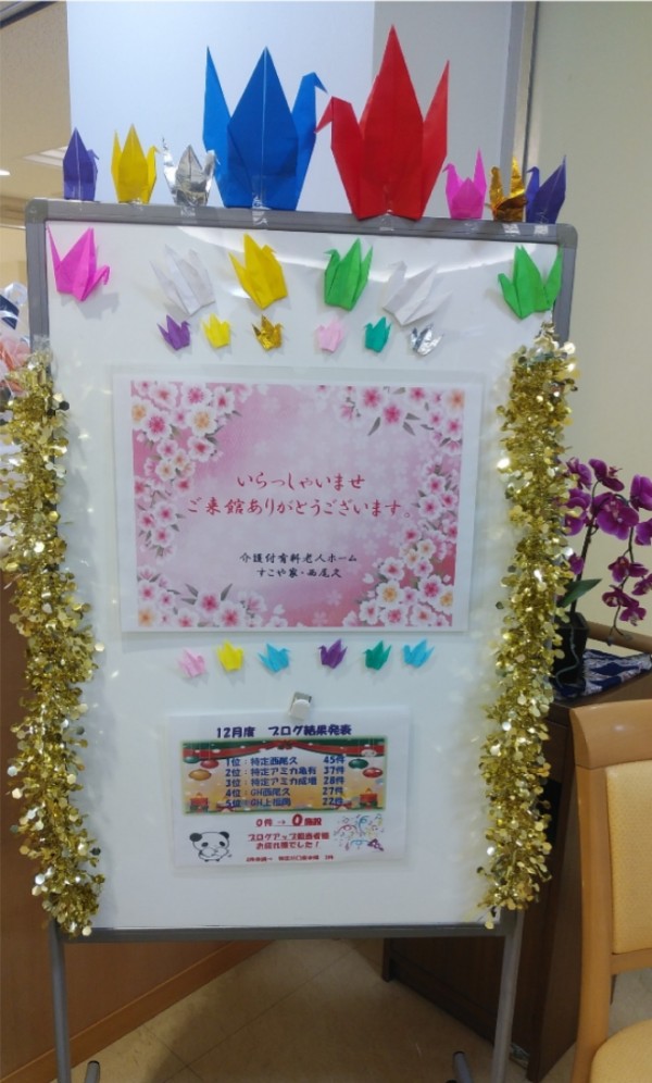 装飾には、好評だった工作レクリエーションで作った梅の花をあしらってみました!