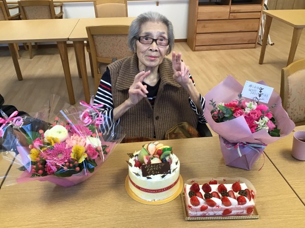 今年で94回目のお誕生日を迎えられ、食べきれない程の甘いモノをいただいておりました♪