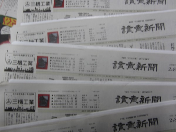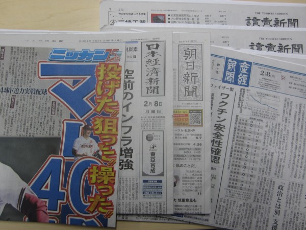 ◎読売新聞6部◎朝日新聞1部◎産経新聞1部◎日本経済新聞1部◎日刊スポーツ新聞1部