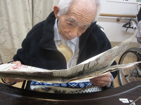 自分のお部屋で朝刊の新聞を読まれる方がいます(^^)/