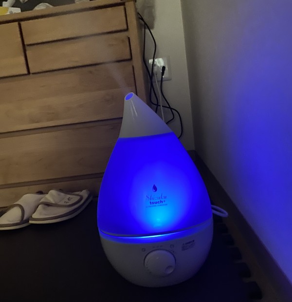 夜間の居室は、エアコンで乾燥しているので、加湿器を使用しています。