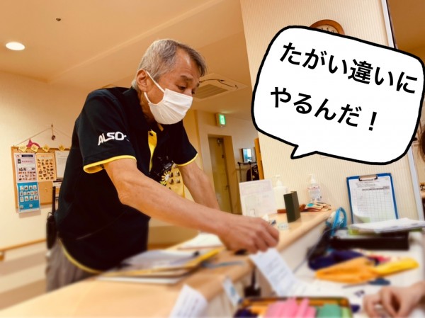 何作ってんだい?と、谷口介護職員がやって来た。
