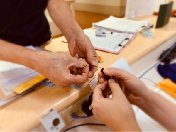 私、持ってるから!ちょっと、糸で結んで!
