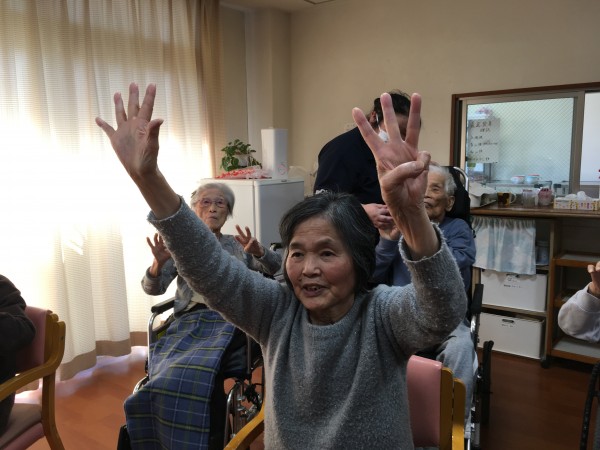 岡庭先生の「元気に若くなりましたか?」の声かけにみんなで元気にまるポーズ!(^^)!