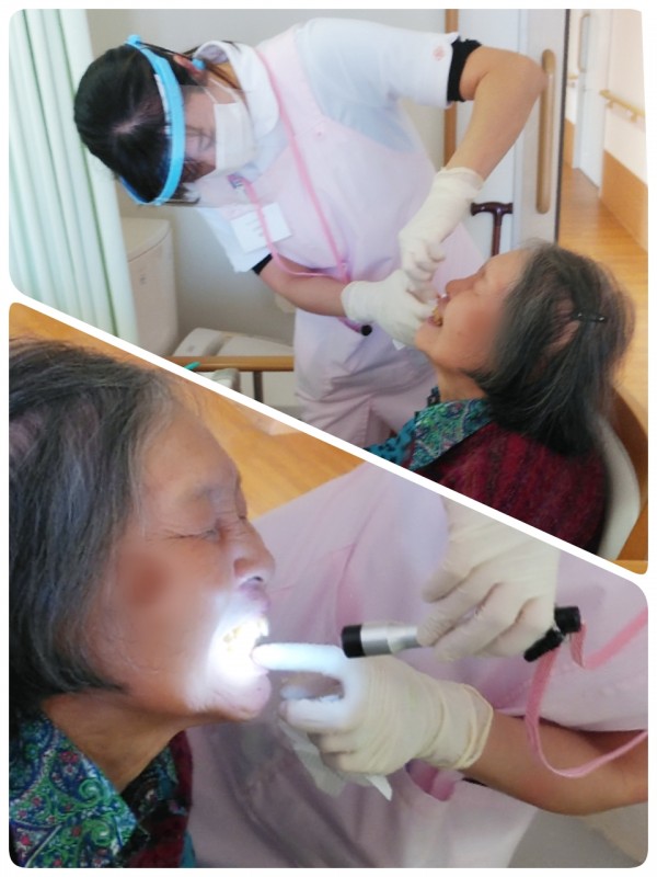 先生の診察が1ヶ月に2回あります。診察前には、歯科衛生士さんがお口の中をキレイにしてくれたり、唾液腺のマッサージをしてくれます。
