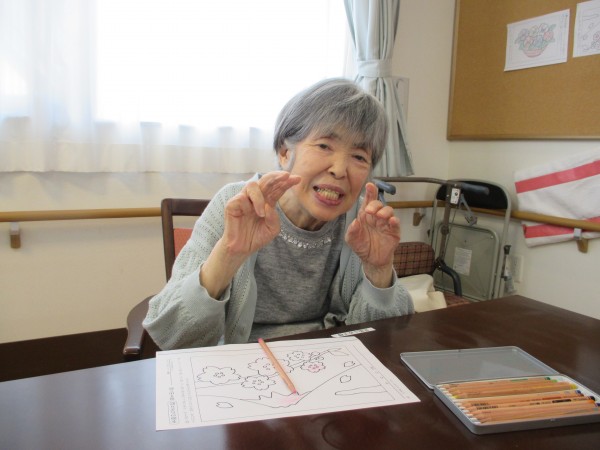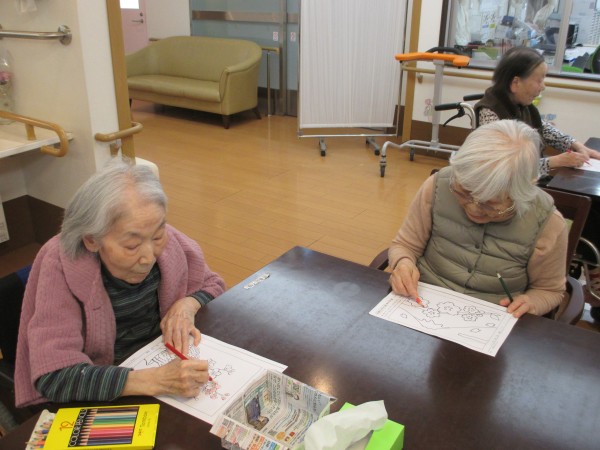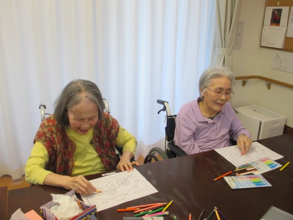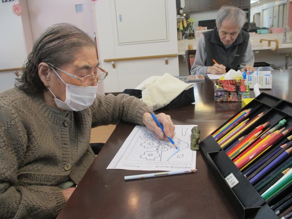 今日のレクリエーション「塗り絵をしているご様子」をアップさせて頂きます。 (((o(*゚▽゚*)o)))