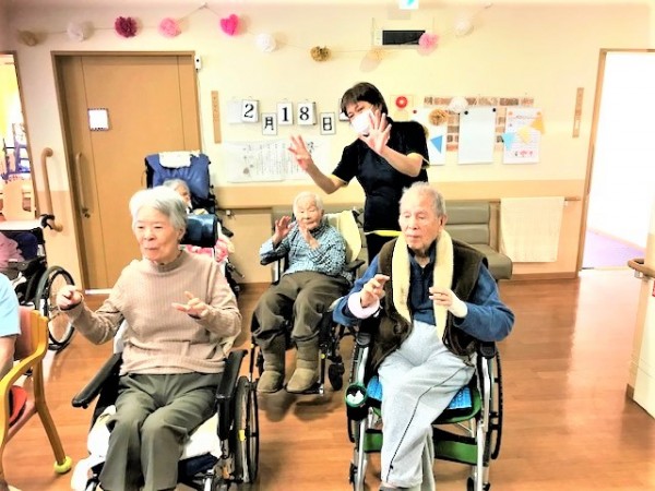 外出が出来なくてもグループホームみんなの家・横浜三保2では毎日ALSOK体操やリズム体操などを行い体を動かしています!