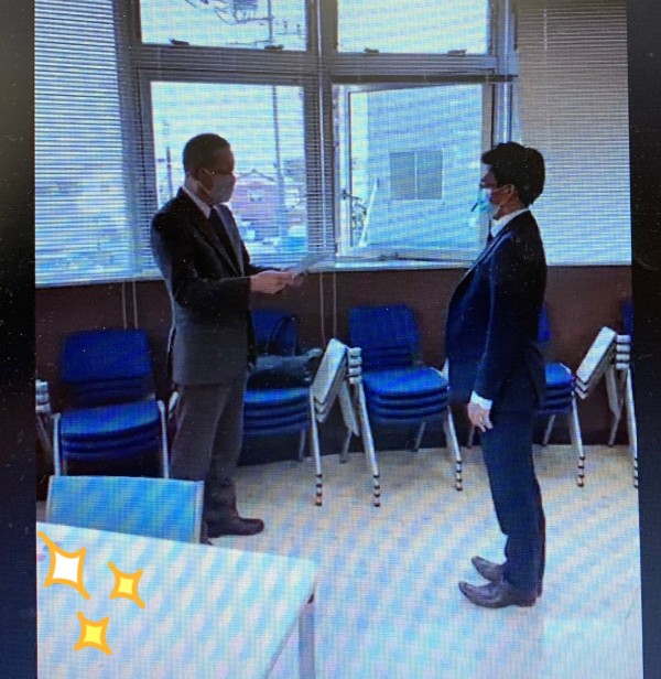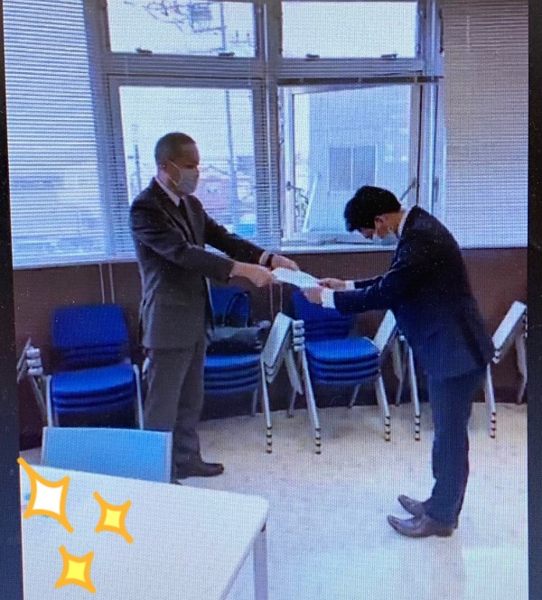 ALSOK介護株式会社の宮澤社長から、参加できない私達の代わりに賞状を受け取ってくださっているのが