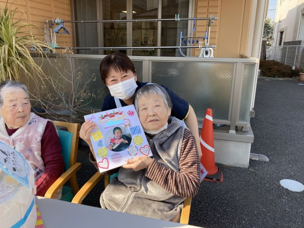こんにちは!グループホームみんなの家三郷2です。ブログをご覧頂きありがとうございます。先日2月生まれの利用者様のお誕生日会を開催いたしました。天気も良くとても暖かかったのでお外で行いました~!
