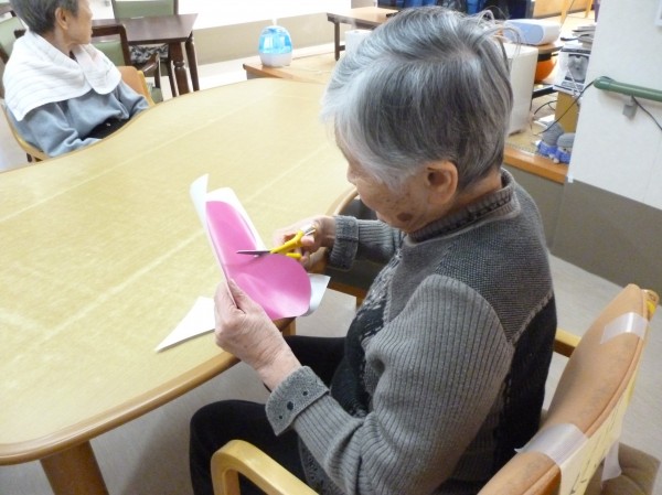 材料を用意し持って行くと「今日は何作るの?」と入居者様(*'▽')