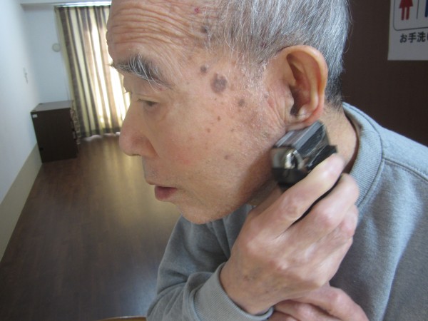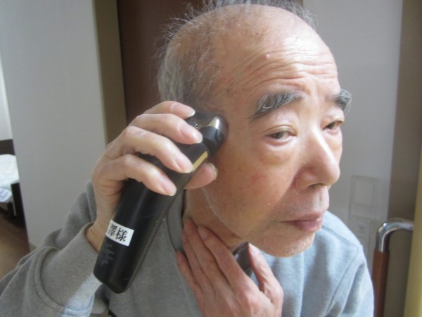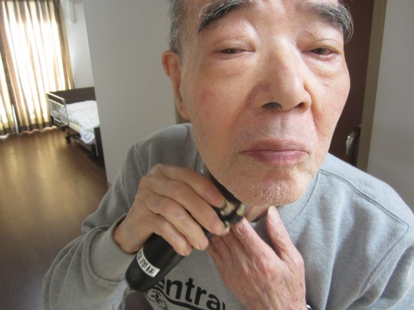 ひげの剃り具合を確認しながら、ジョリジョリジョリ・・・・・。