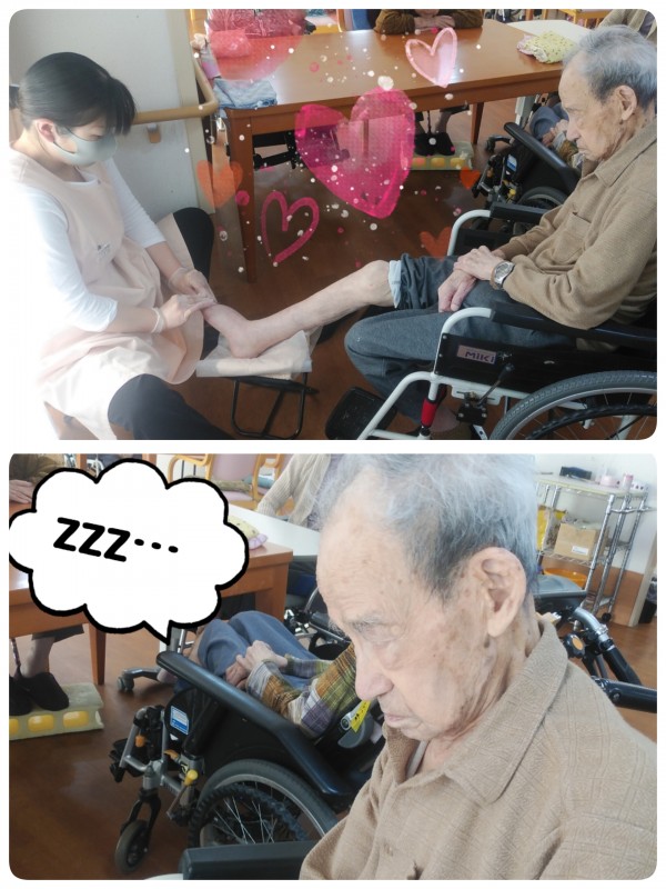 お父様がシニアセラピーを受けていらっしゃいます。お腹もいっぱい、マッサージも心地よい…