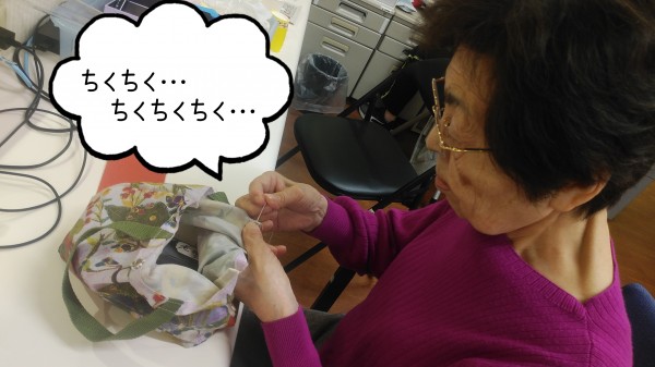 ご自分の巾着のスナップが取れかけてたので、縫い付けてたんですって!