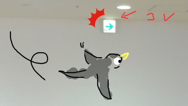 あれは、火事の時などに逃げる場所を教えてくれている矢印なんですよ、と、お答えすると