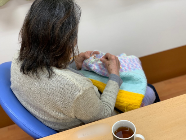 大きなひざ掛けをたくさん作っておられます。