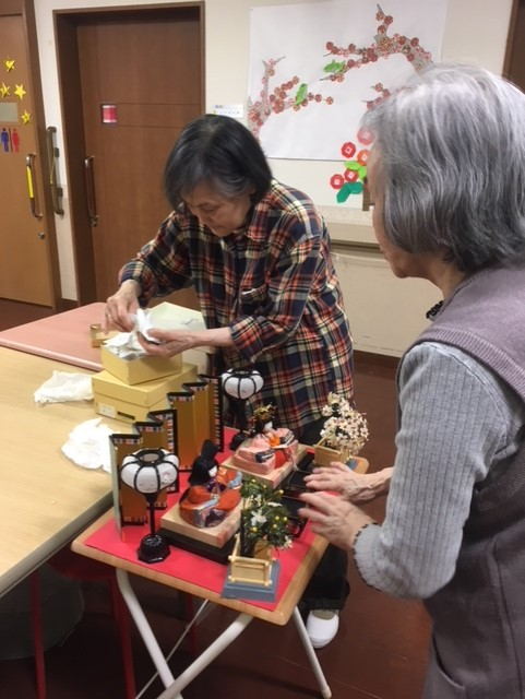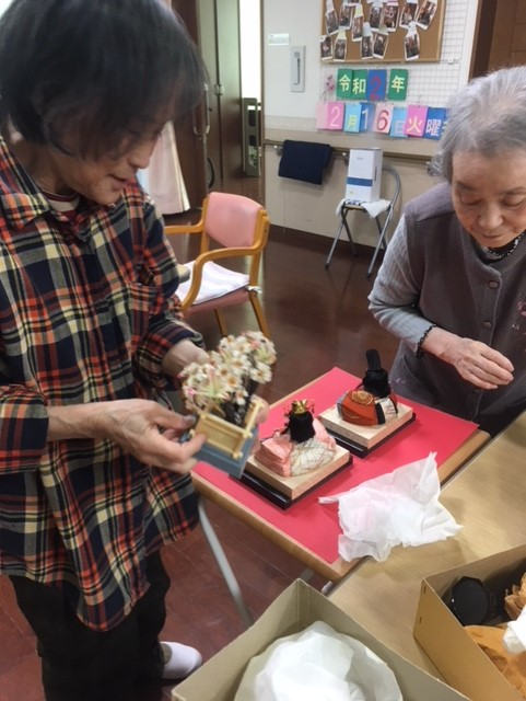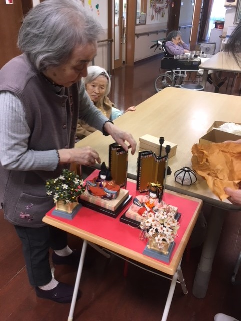 レクリエーションの時間を使っておひな様の飾り付けをしました(#^^#)