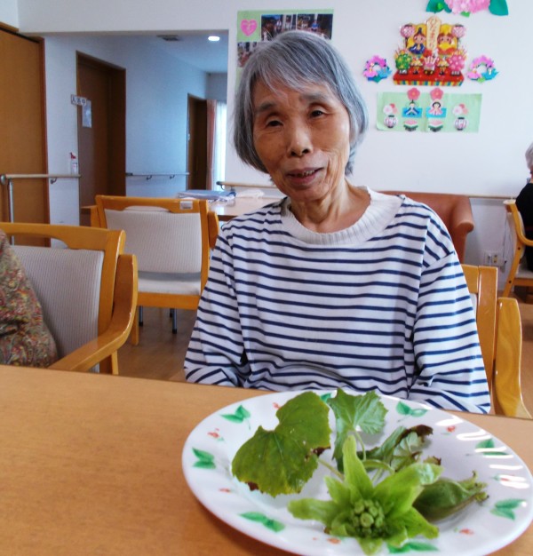 寒い日が続き、外気浴もできないので、少しでも春の訪れを感じて頂こうとスタッフが庭から「ふきのとう」を持ってきました。