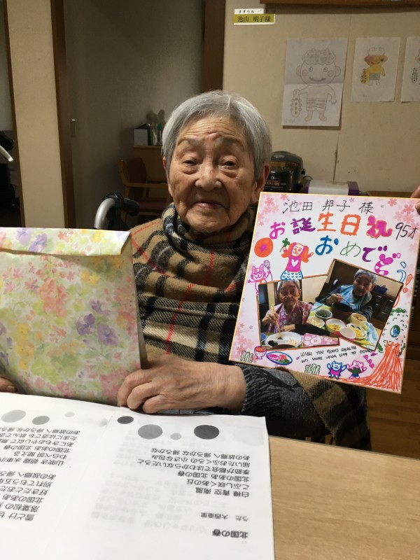 お誕生日当日にご家族から「どら焼き」をいただき、召し上がりながら「美味しいねぇ」「綺麗だねぇ」と仰られておりました。