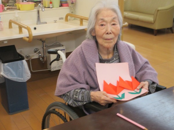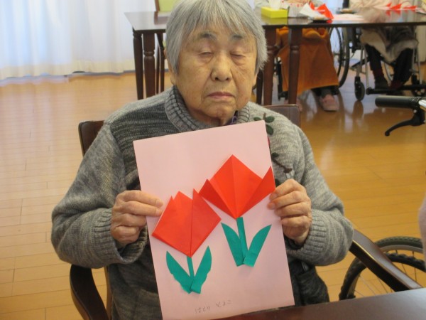 今日のレクリエーション「折り紙でチューリップ」を作りましたのでアップさせて頂きます。 (((o(*゚▽゚*)o)))