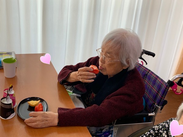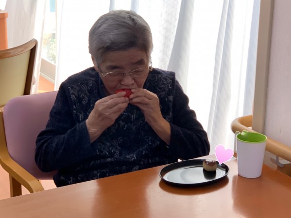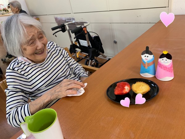 入居者様と、お雛様を作った後のオヤツにお出ししました。