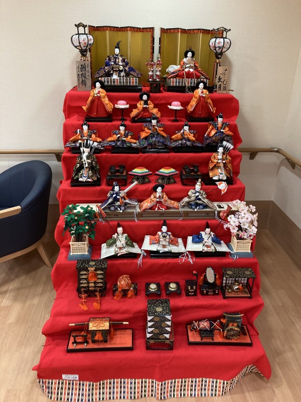 今回は2階ホールにお雛様を飾りました( ^ω^ )