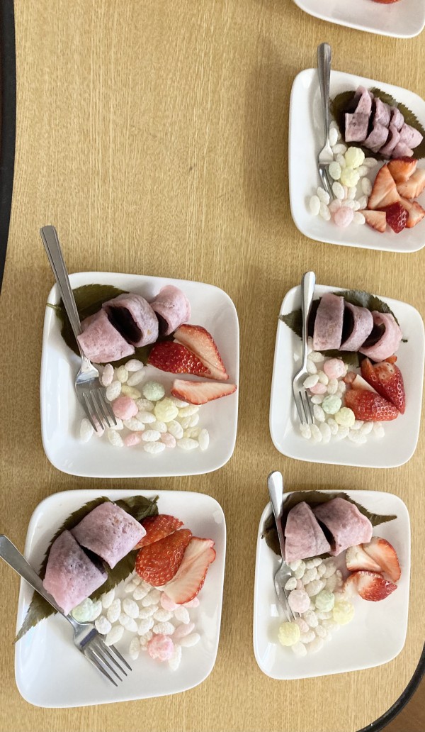 今日はひな祭りなのでおやつに桜餅とひなあられを食べました‼️