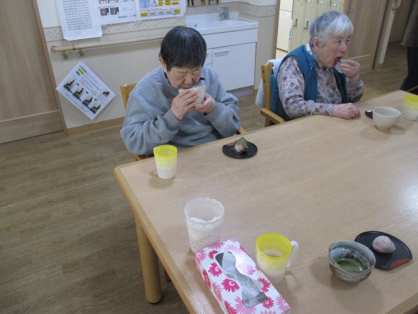 2階のご入居者様も桜餅とお抹茶を召し上がっていただきました。