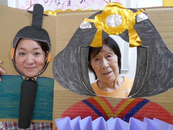 お雛様、お内裏様スタッフ手作りの顔出しパネルで、記念撮影!!