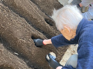 ジャガイモを植える前に、やる気満々のホーム長が、先に雑草を取り、