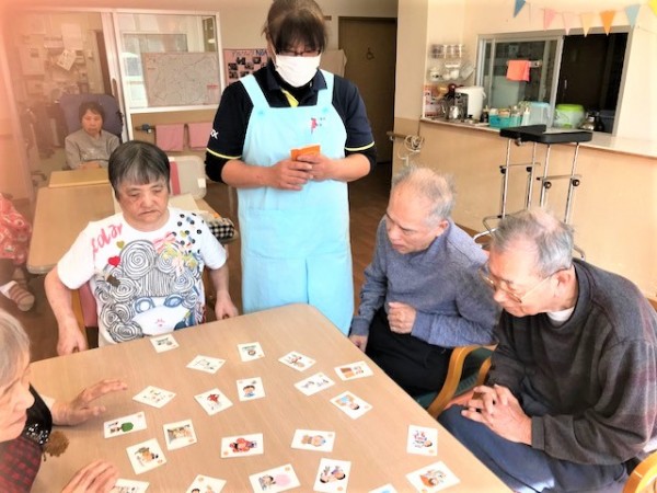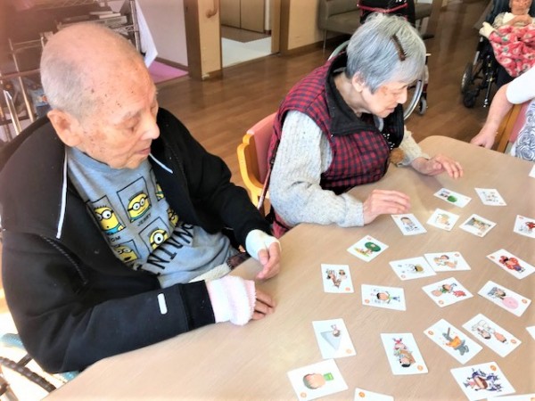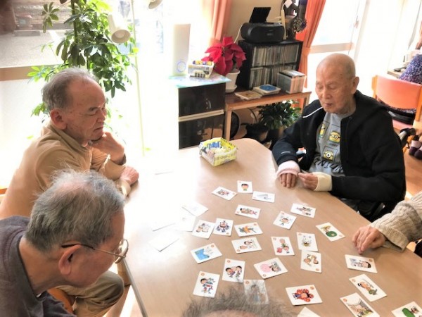 でも、今日はお散歩ではなく、ゆったりとした「かるた」で過ごして頂きました。