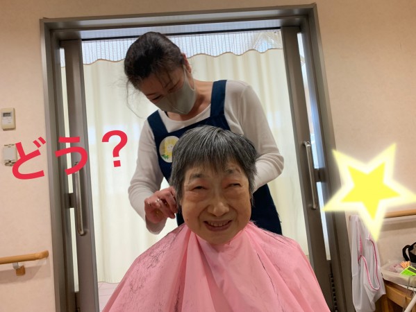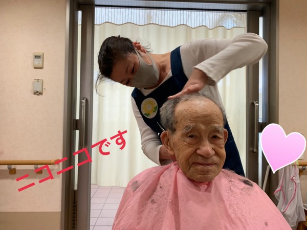 それぞれに、入居者様は、訪問理美容を満喫されております。