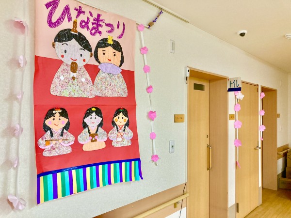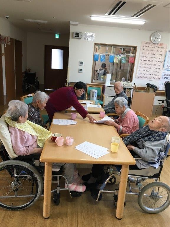 GH稲城長沼のレクでも、壁画用の可愛らしいお花作りを楽しんでいます。