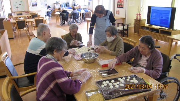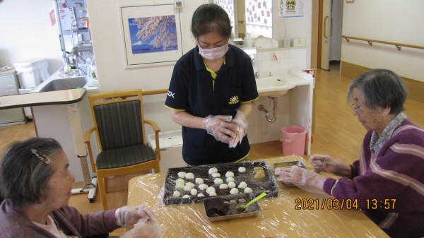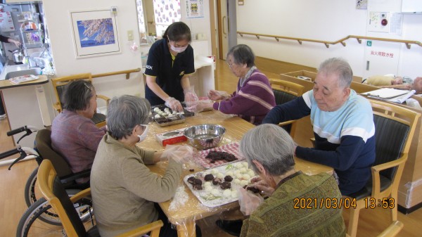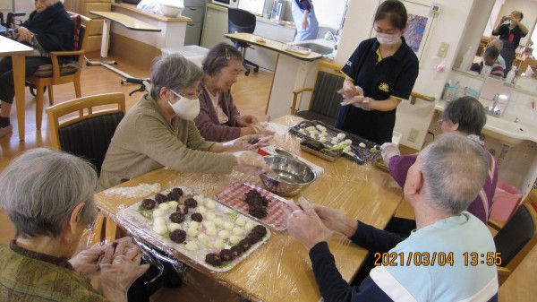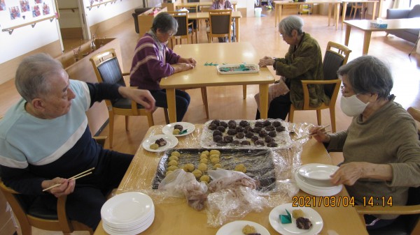 本日の「すこや家 西東京」の皆様は「ぼたもち作り」に夢中です。