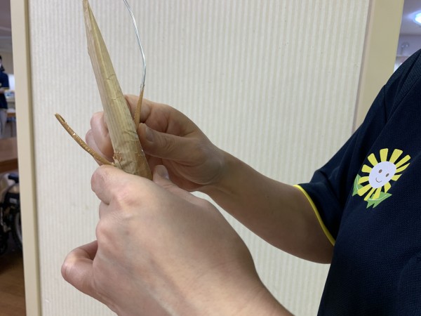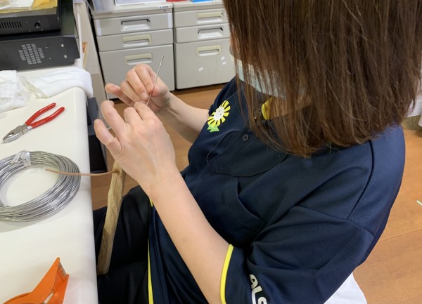 ゴボウに、針金を通して、小さく切ったガムテープでコーティングしていっております。。。