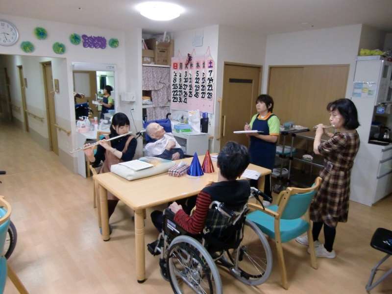 ケーキの後は恒例の音楽会♪♪ もみじ・里の秋・青い山脈・リンゴの唄・上を向いて歩こうの5曲です。