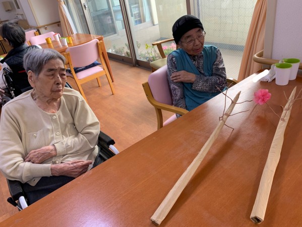 入居者様が、花を咲かせてくださるので、頑張って枯れ木を作ります!