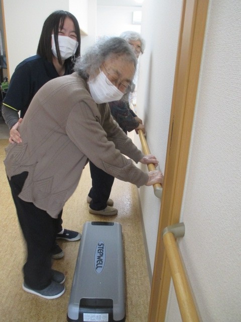 数を数えながらステップ運動・・・大きな声で5.6.7数えてます。